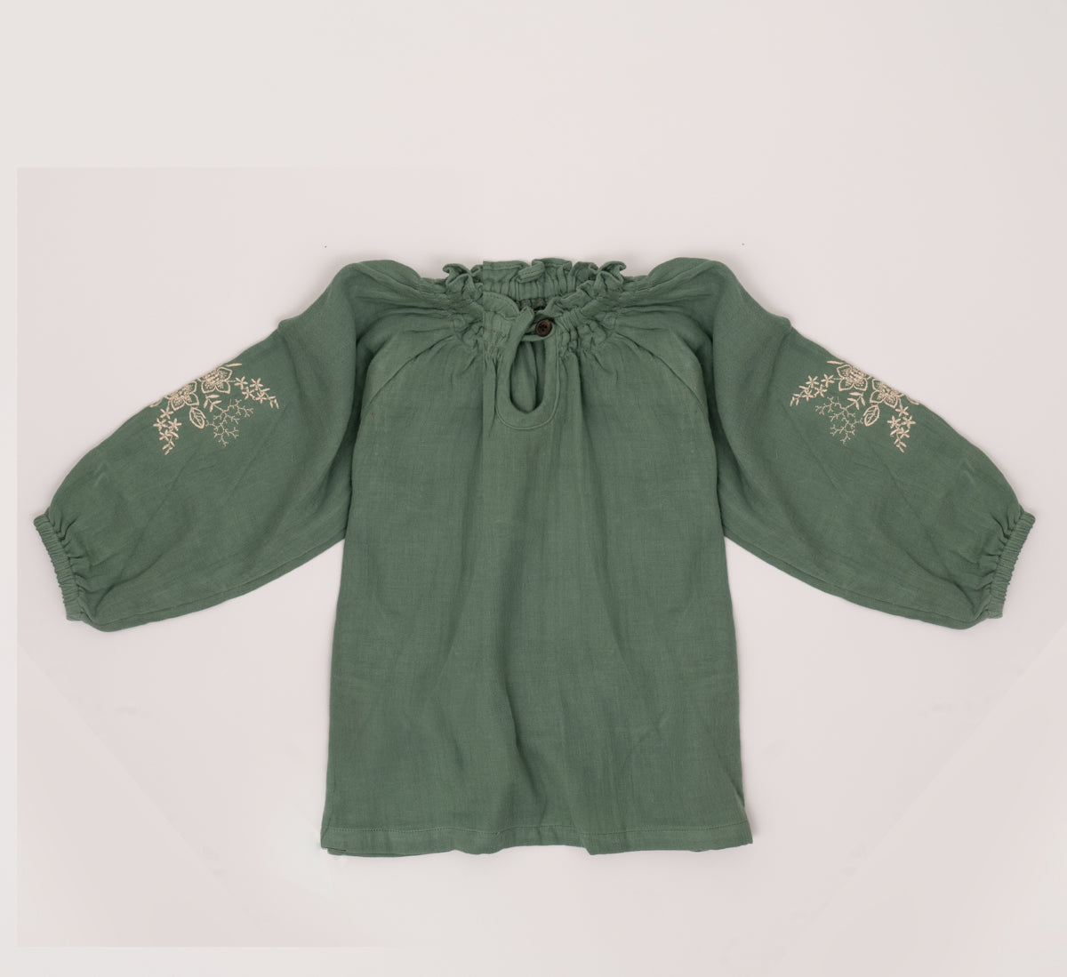 Designed for infant girls, top crafted from breathable cotton fabric, ensuring utmost comfort during all-day wear. The set features a charming with hand embroidery. It is perfect for creating a stylish yet playful look for your little one.